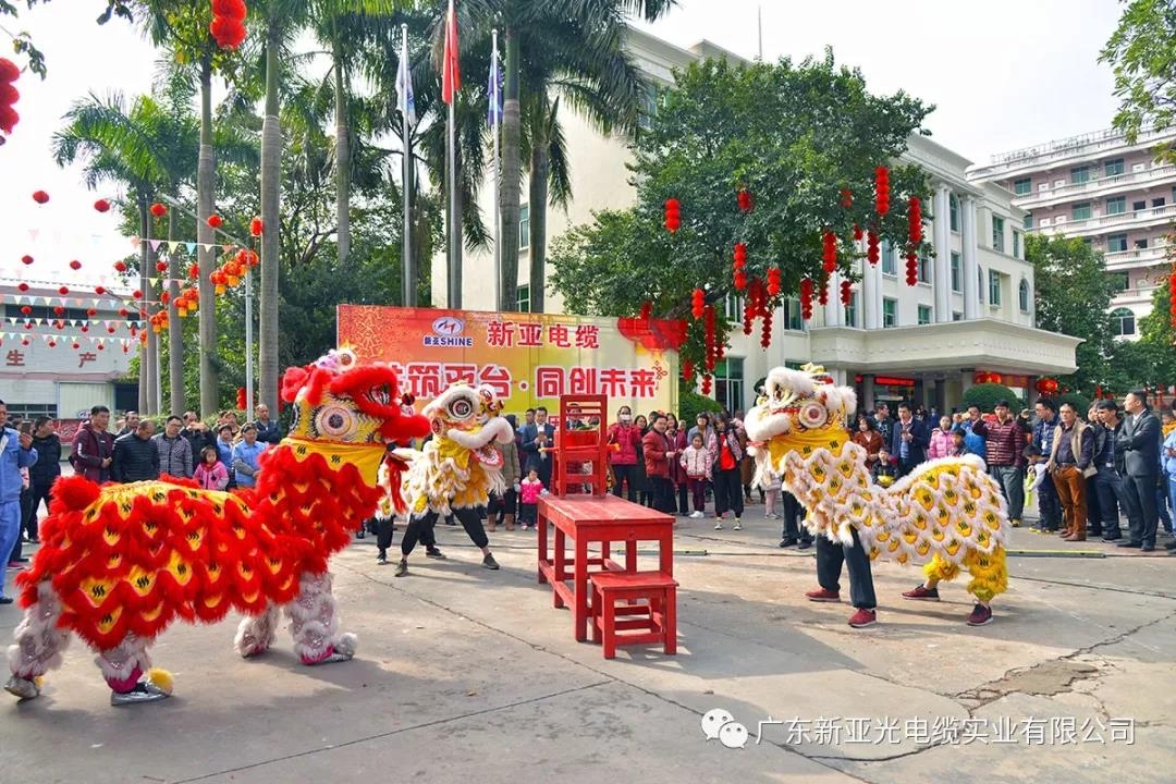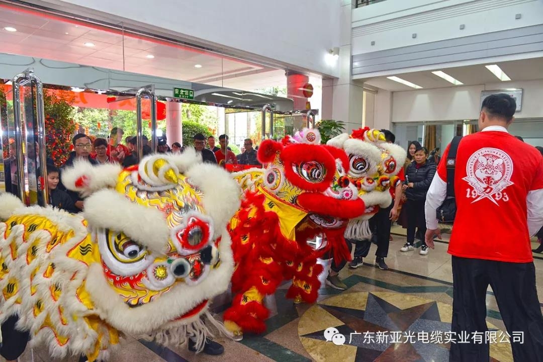 在廣東新亞光電纜實(shí)業(yè)有限公司,隨著陣陣鑼鼓聲,獅子翩翩起舞,點(diǎn)睛,醒獅采青、接財(cái),瑞獅吐對(duì)聯(lián),醒獅旺場拜門,把吉祥和好運(yùn)散播到每一個(gè)角落。美好的祝福、祥和的氣氛讓新亞員工感受到了回到大家庭的溫暖,對(duì)新年充滿希望。