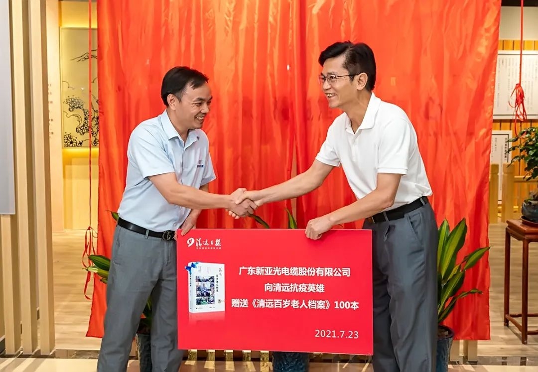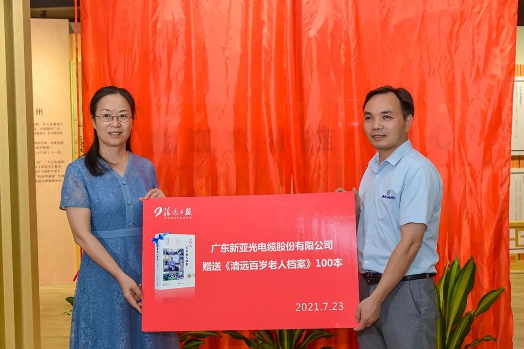 值中國共產黨建黨百年之際,為加強清遠市精神文明建設,關愛老人健康、助力邊遠山區青年讀大學,開展切實為群眾辦實事活動。7月23日下午,清遠日報社《清遠百歲老人檔案》捐贈儀式順利舉行。新亞電纜作為捐贈愛心企業參加。