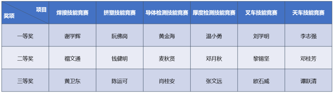 在公司董事會(huì)的大力支持下,在組委會(huì)以及各級(jí)部門(mén)的大力配合下,六項(xiàng)技能競(jìng)賽能夠有條不紊地進(jìn)行,2021年度“新亞杯”專(zhuān)業(yè)技能競(jìng)賽成功舉辦并取得了好成績(jī),決賽成績(jī)?nèi)缦拢?br />