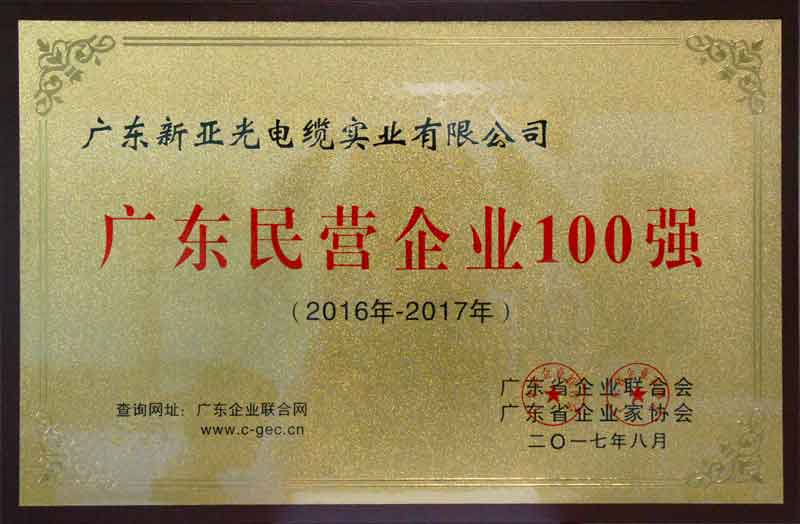 廣東新亞光電纜實(shí)業(yè)有限公司一直以“產(chǎn)品與服務(wù)并重,質(zhì)量第一,客戶至上”為企業(yè)宗旨,遵循“新亞電纜用心造”的品牌理念,用實(shí)力取得廣東企業(yè)500強(qiáng)稱號,同時獲得廣東民營企業(yè)100強(qiáng)、廣東制造業(yè)100強(qiáng)。