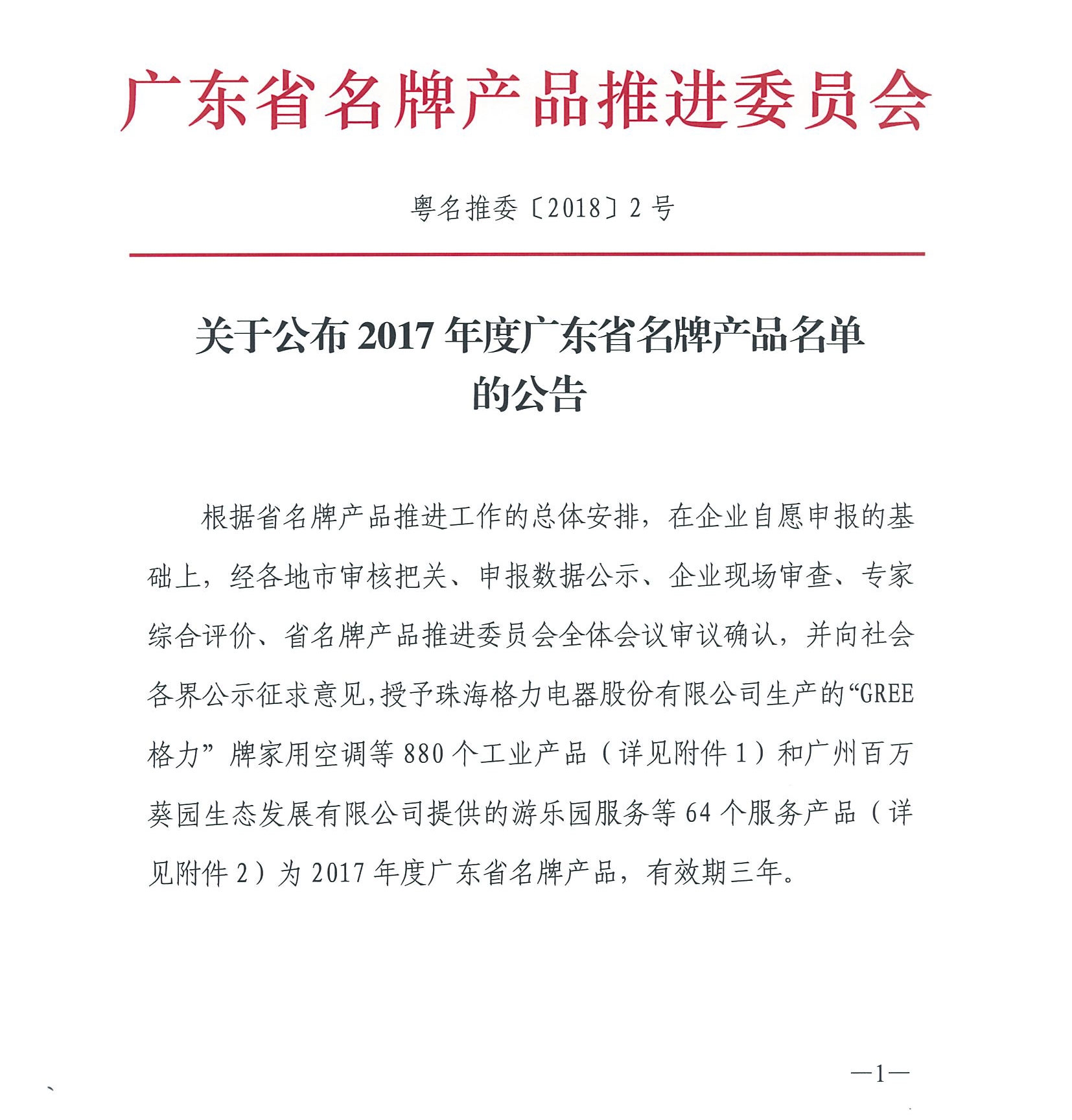 2017年廣東省名牌產品(工業類)名單 | ||
