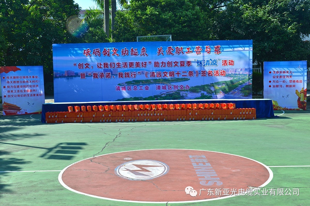 7月20日上午9時,區人大副主任、區總工會主席韋世彪,區文明辦常務副部長鐘振良,區總工會副主席陳靜,鳳城街道辦總工會主席黃蕾在我司開展“創文,讓我們生活更美好”助力創文夏季“送清涼”暨“我承諾、我踐行”《清遠文明十二條》簽名活動,為我司職工送上夏日的關懷與問候。